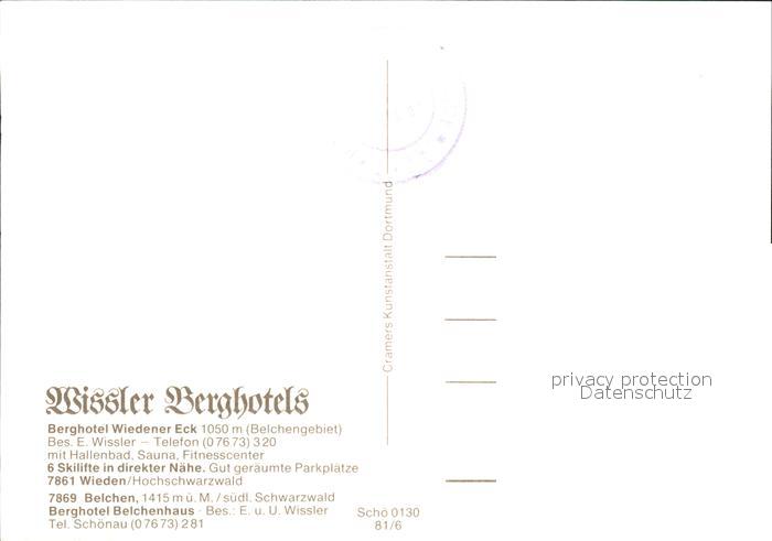 71928504 Wieden Schwarzwald Hotel Belchenhaus postalisch nicht gelaufen Erhaltung siehe scans KatCode: 11110008336096
