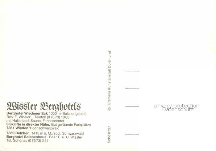 72682253 Wieden Schwarzwald Hotel Belchenhaus postalisch nicht gelaufen Erhaltung siehe scans [AndreD76] KatCode: 11110008336096