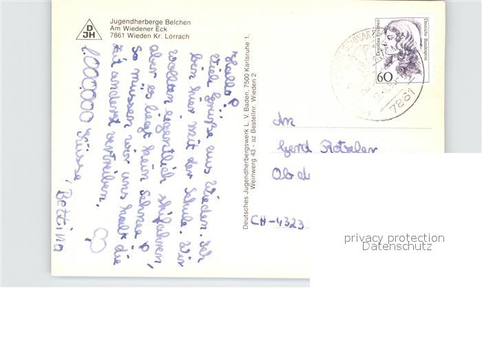 72613289 alte Postkarte Wieden Schwarzwald Jugendherberge Belchen postalisch gelaufen Erhaltung siehe scans [AndreD76] KatCode: 11110008336096