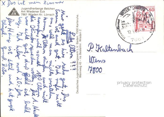 72514416 alte Postkarte Wieden Schwarzwald Jugendherberge Belchen postalisch gelaufen Erhaltung siehe scans KatCode: 11110008336096