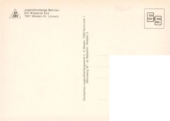 73928271 Wieden Schwarzwald Jugendherberge Belchen Am Wiedener Eck postalisch nicht gelaufen Erhaltung siehe scans [WerneD78] KatCode: 11110008336096