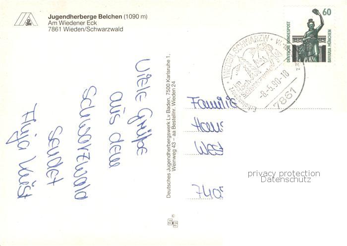 73785279 alte Postkarte Wieden Schwarzwald Jugendherberge Belchen am Wiedener Eck postalisch gelaufen Erhaltung siehe scans [FriedD77] KatCode: 11110008336096