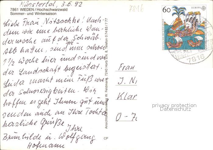 71913466 alte Postkarte Wieden Schwarzwald Orts und Teilansichten Schwarzwaldtrachten Schwimmbad Muehle postalisch gelaufen Erhaltung siehe scans KatCode: 11110008336096