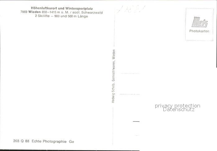 41784425 Wieden Schwarzwald Ortsansicht postalisch nicht gelaufen Erhaltung siehe scans KatCode: 11110008336096