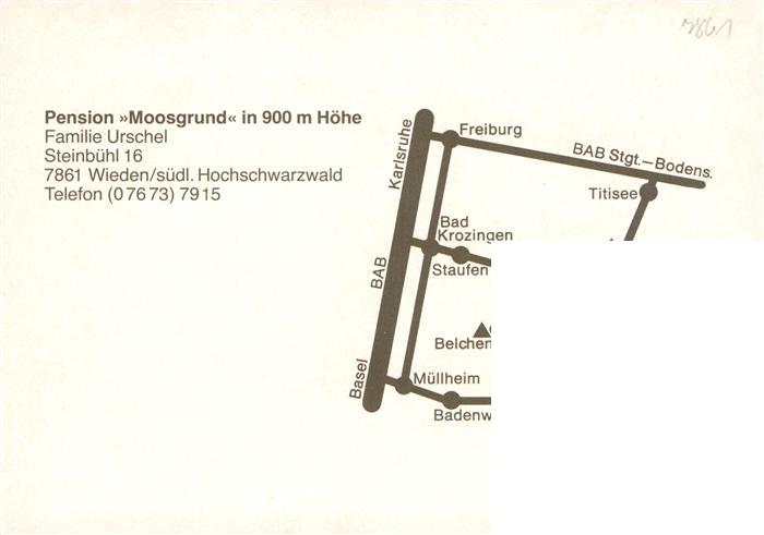73928313 Wieden Schwarzwald Pension Moosgrund postalisch nicht gelaufen Werbekarte (keine Postkarte) Erhaltung siehe scans [WerneD78] KatCode: 11110008336096