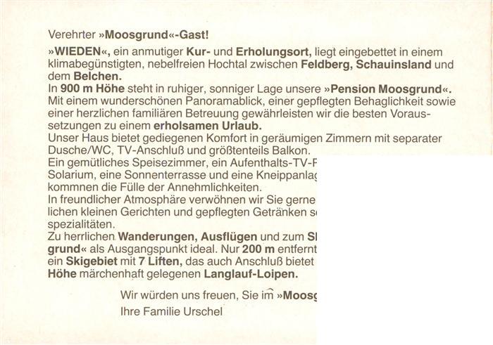 73928603 Wieden Schwarzwald Pension Moosgrund Panorama Schwimmbad Gaststube Terrasse postalisch nicht gelaufen Werbekarte (keine Postkarte) Erhaltung siehe scans [WerneD78] KatCode: 11110008336096