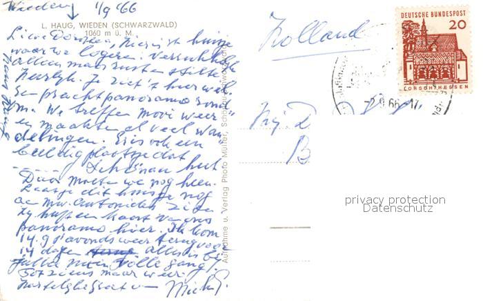 73331142 alte Postkarte Wieden Schwarzwald Schwarzwaldhaus postalisch gelaufen Erhaltung siehe scans [WerneD78] KatCode: 11110008336096