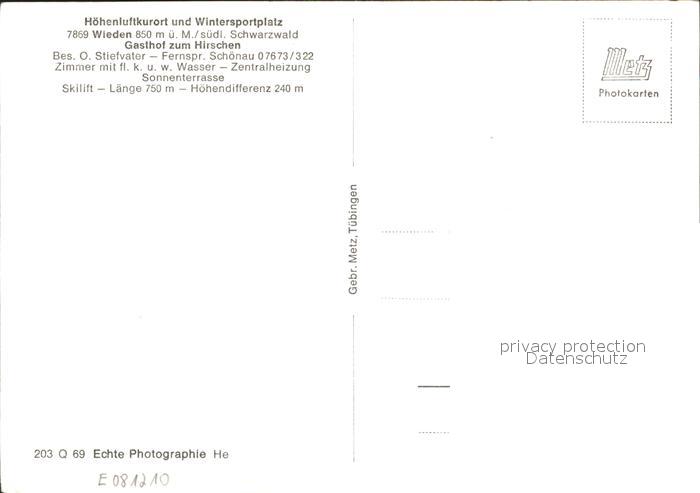 31841602 Wieden Schwarzwald postalisch nicht gelaufen Erhaltung siehe scans KatCode: 11110008336096