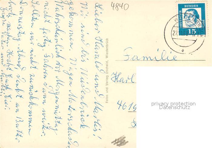 73695799 alte Postkarte Wiedenbrueck 100Jahre Wiedenbrueck Haus Hemmelmann Berlinerwall Klosterbogen Marienstrasse postalisch gelaufen Erhaltung siehe scans [LiesaD40] KatCode: 11110005754028