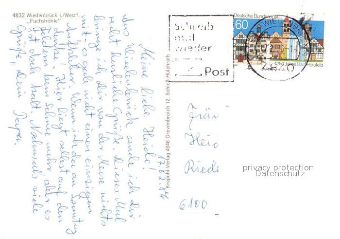 73323645 alte Postkarte Wiedenbrueck Gaststaette Restaurant Fuchshoehle Fachwerkhaus postalisch gelaufen Erhaltung siehe scans [FriedD77] KatCode: 11110005754028