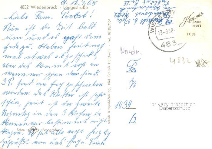 73671797 alte Postkarte Wiedenbrueck Langestrasse postalisch gelaufen Erhaltung siehe scans [WerneD78] KatCode: 11110005754028