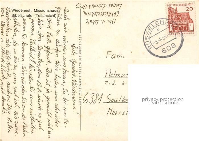 73083746 alte Postkarte Wiedenest Missionshaus Bibelschule postalisch gelaufen Erhaltung siehe scans [NatalD47] KatCode: 11110005374004