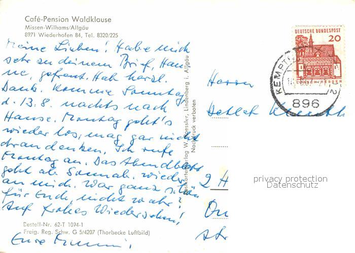72790050 alte Postkarte Wiederhofen Allgaeu Cafe Pension Waldklause postalisch gelaufen Erhaltung siehe scans [AndreD76] KatCode: 11110009780127