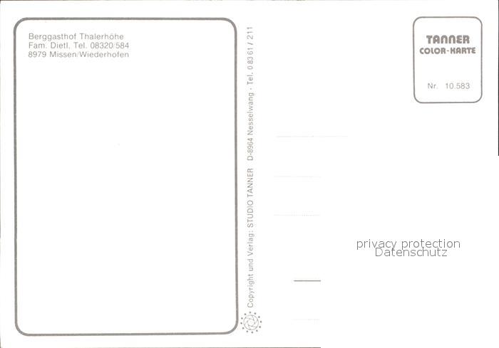 72456275 Wiederhofen Allgaeu Missen Berggasthof Thalerhoehe postalisch nicht gelaufen Erhaltung siehe scans KatCode: 11110009780127