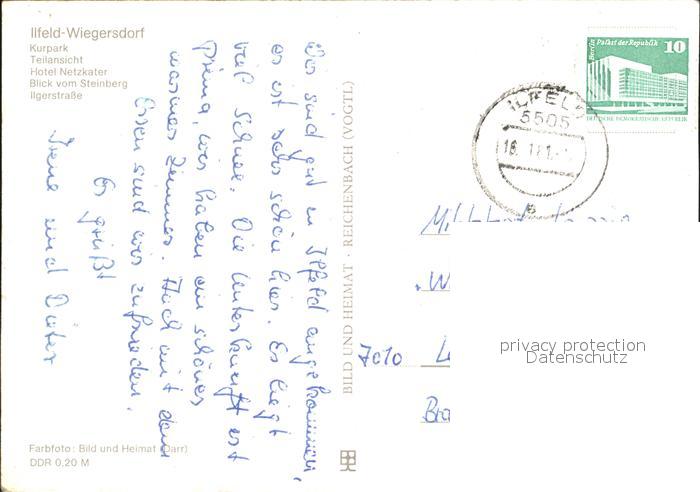 72057261 alte Postkarte Wiegersdorf Kurpark Hotel Netzkater Blick vom Steinberg Ilgerstrasse postalisch gelaufen Erhaltung siehe scans KatCode: 11110016062022