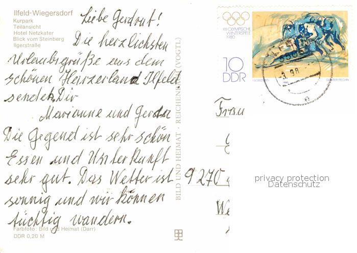 72652050 alte Postkarte Wiegersdorf Kurpark Teilansicht Hotel Netzkater Blick vom Steinberg Ilgerstrasse postalisch gelaufen Erhaltung siehe scans [FriedD77] KatCode: 11110016062022