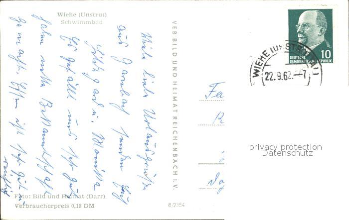 72009656 alte Postkarte Wiehe Unstruttal Schwimmbad postalisch gelaufen KatCode: 11110016065081