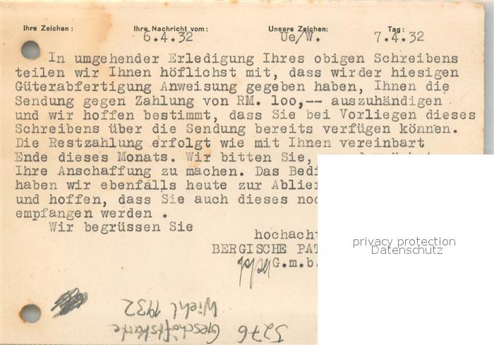 Wiehl Oberbergischer Kreis Bergische Patentachsenfabrik Geschaeftskorrespondenz