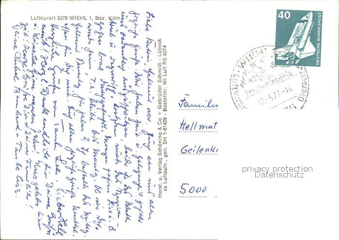72304645 alte Postkarte Wiehl Oberbergischer Kreis Fliegeraufnahme postalisch gelaufen Erhaltung siehe scans KatCode: 11110005374048