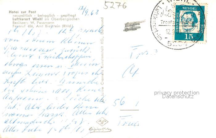73706063 alte Postkarte Wiehl Oberbergischer Kreis Gesamtansicht postalisch gelaufen Erhaltung siehe scans [LiesaD40] KatCode: 11110005374048