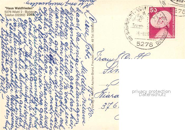 73087724 alte Postkarte Wiehl Oberbergischer Kreis Haus Waldfrieden postalisch gelaufen Erhaltung siehe scans [KathaD81] KatCode: 11110005374048