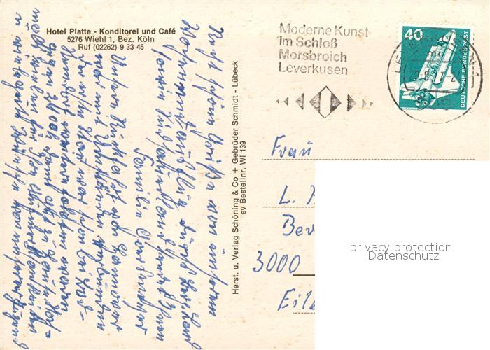 73843587 alte Postkarte Wiehl Oberbergischer Kreis Hotel Cafe Platte Gastraeume postalisch gelaufen Erhaltung siehe scans [WerneD78] KatCode: 11110005374048