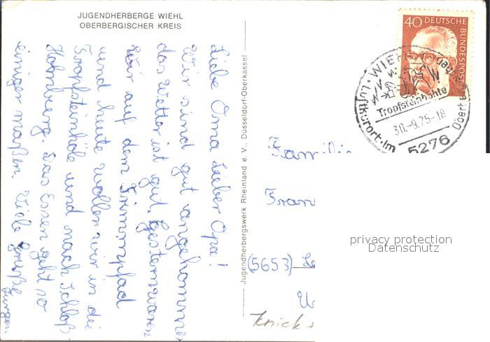 72190643 alte Postkarte Wiehl Oberbergischer Kreis Jugendherberge postalisch gelaufen Erhaltung siehe scans KatCode: 11110005374048