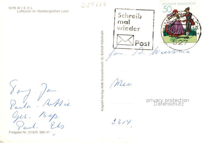 72953225 alte Postkarte Wiehl Oberbergischer Kreis Luftkurort Fliegeraufnahme postalisch gelaufen Erhaltung siehe scans [FriedD77] KatCode: 11110005374048