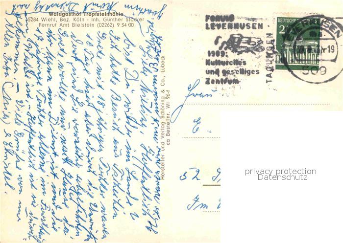 72896559 alte Postkarte Wiehl Oberbergischer Kreis Panorama Waldgasthof Tropfsteinhoehle Burgenland Schloss Homburg postalisch gelaufen Erhaltung siehe scans [FriedD77] KatCode: 11110005374048