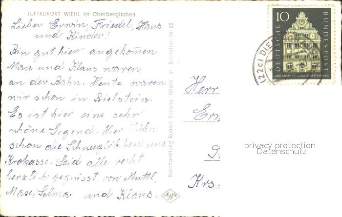 72187665 alte Postkarte Wiehl Oberbergischer Kreis postalisch gelaufen Erhaltung siehe scans KatCode: 11110005374048