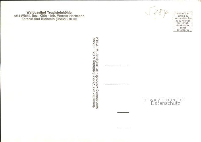 72449232 Wiehl Reichshof Waldgasthof Tropfsteinhoele postalisch nicht gelaufen Erhaltung siehe scans KatCode: 11110005374040