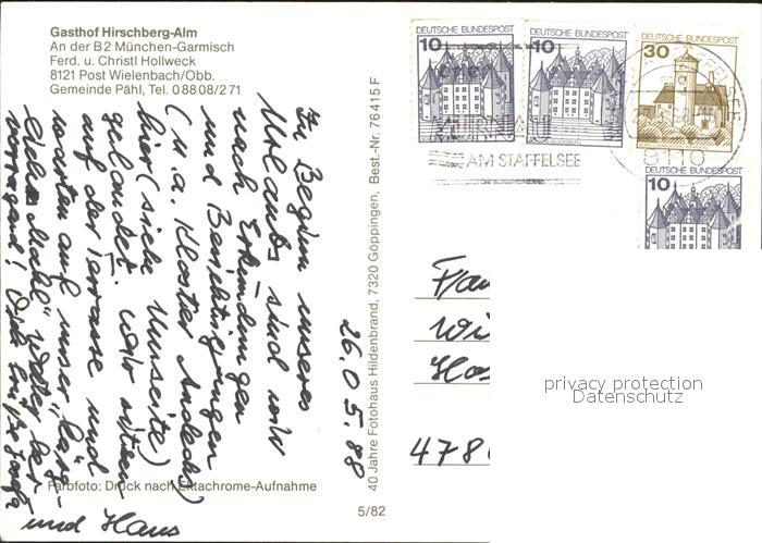 71866499 alte Postkarte Wielenbach Gasthof Horschberg-Alm postalisch gelaufen Erhaltung siehe scans KatCode: 11110009190159