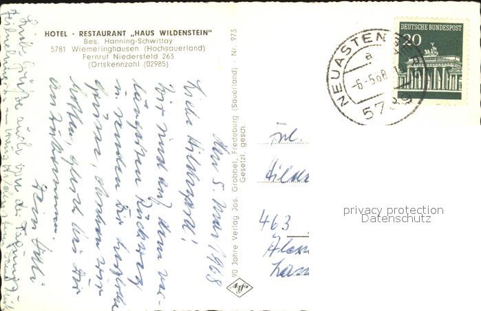 72474770 alte Postkarte Wiemeringhausen Haus Wildenstein Treppenaufgang Gaststube postalisch gelaufen Erhaltung siehe scans KatCode: 11110005958036