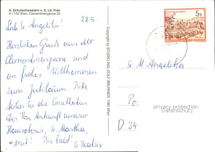 72275458 alte Postkarte Wien A. Schulschwesternhaus postalisch gelaufen Erhaltung siehe scans KatCode: 11390130090001