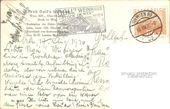 11883603 WIEN AT Alfred Dolls Weinhaus postalisch gelaufen Erhaltung siehe scans Alte Ansichtskarte Postkarte alte Postkarte Nata Katcode 11390130090001