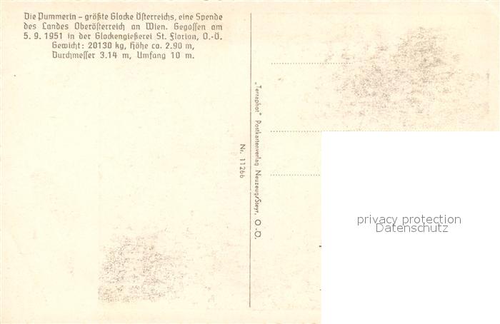 43132723 WIEN AT Die neue Pummerin Friede sei stets nur ihr Geläute postalisch nicht gelaufen Erhaltung siehe scans [KathaD81] Kath Katcode 11390130090001