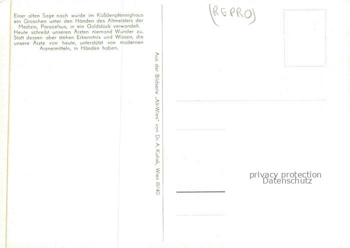 74012477 WIEN AT Ehem Kuessdenpfennighaus Aquarell postalisch nicht gelaufen Erhaltung siehe scans [WerneD78] KatCode: 11390130090001