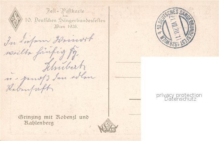 43217956 WIEN AT Fest Postkarte des Dt Saengerbundesfestes 1928 postalisch gelaufen Erhaltung siehe scans [WerneD78] alte Postkarte Wern Katcode 11390130090001