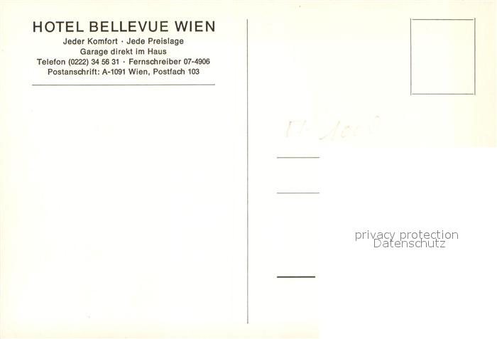 73740525 WIEN AT Hotel Bellevue postalisch nicht gelaufen Erhaltung siehe scans [WerneD78] Wern Katcode 11390130090001