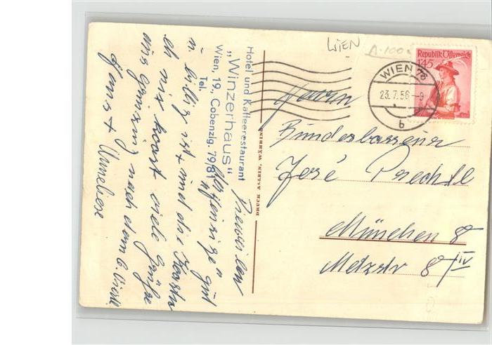 11317356 WIEN AT Hotel Winzerhaus Kuenstlerkarte Holzwarth postalisch gelaufen gute Erhaltung Alte Ansichtskarte Postkarte alte Postkarte hz_F Katcode 11390130090001
