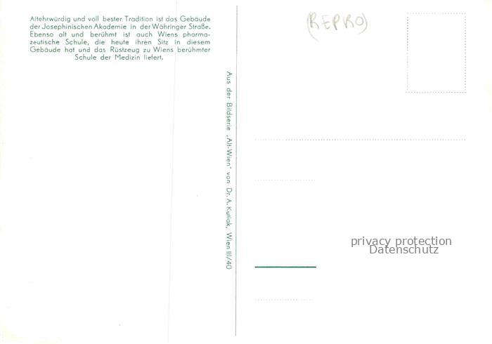 74012483 WIEN AT Josephinische Akademie in der Wahringer Strasse 1787 Aquarell postalisch nicht gelaufen Erhaltung siehe scans [WerneD78] KatCode: 11390130090001