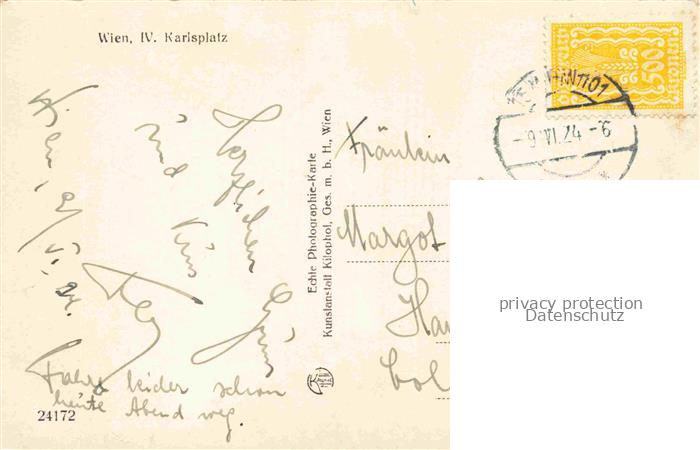 74037376 alte Postkarte WIEN AT Karlsplatz postalisch gelaufen Erhaltung siehe scans [FriedD77] KatCode: 11390130090001