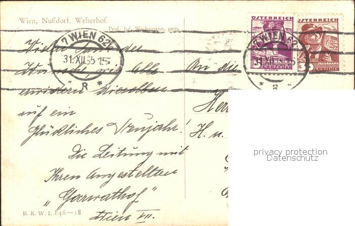 11883348 WIEN AT Nussdorf Welserhof Kuenstlerkarte Wachsmann postalisch gelaufen Erhaltung siehe scans Alte Ansichtskarte Postkarte alte Postkarte Nata Katcode 11390130090001