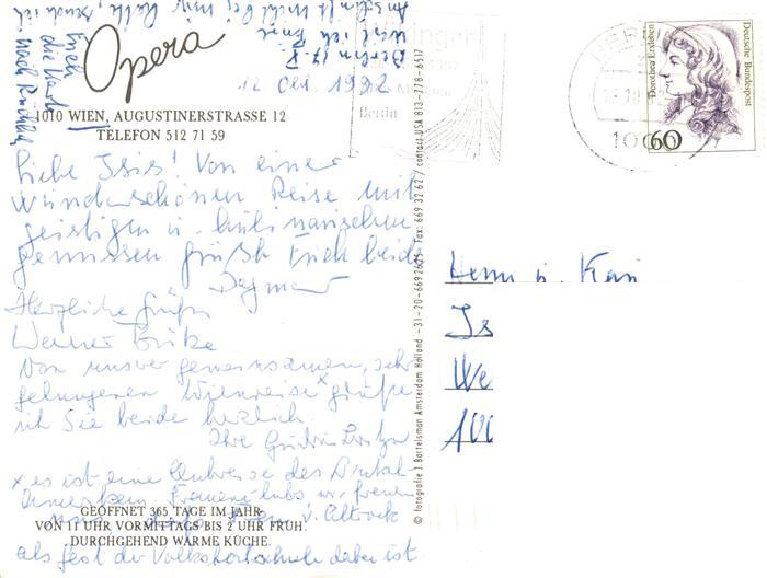 alte Postkarte Wien AT Opera Gasthaus postalisch gelaufen Erhaltung siehe scans [WerneD78]