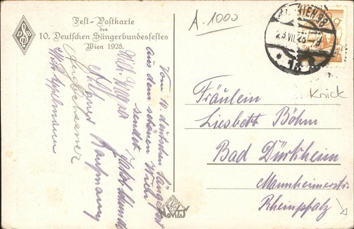 11267239 WIEN AT Saengerbundfest postalisch gelaufen Erhaltung mit Maengel Alte Ansichtskarte Postkarte alte Postkarte hz_C Katcode 11390130090001
