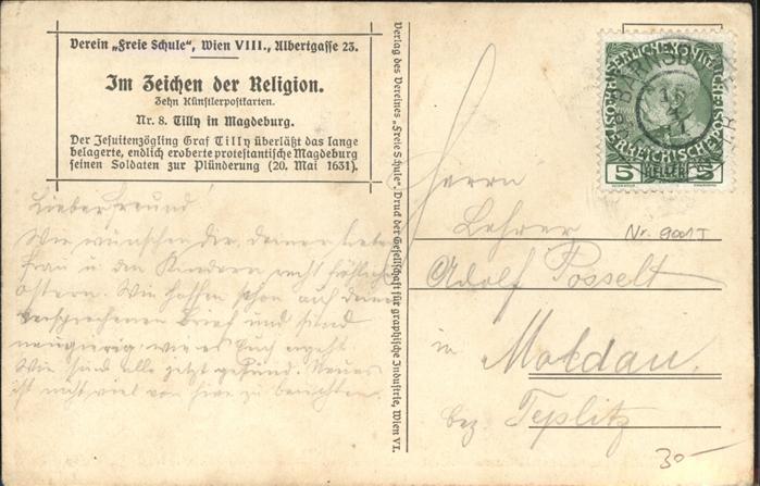 11100445 WIEN AT Tilly in Magdeburg 1631 Kuenstlerpostkarte postalisch gelaufen Alte Ansichtskarte Postkarte alte Postkarte Stef Katcode 11390130090001