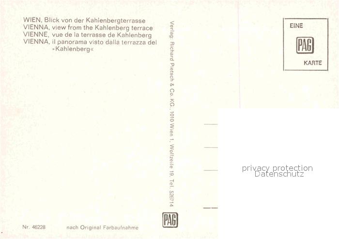 72816618 Wien Blick von der Kahlenbergterrasse postalisch nicht gelaufen Erhaltung siehe scans [AndreD76] KatCode: 11390130090001