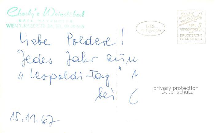73034568 Wien Charlys Weinstueberl postalisch nicht gelaufen Erhaltung siehe scans [KathaD81] KatCode: 11390130090001