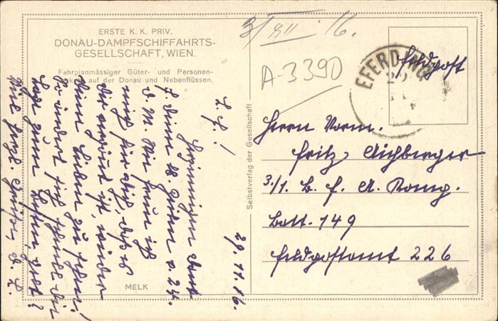 11286679 Wien Donau Dampfschiff Feldpost KatCode 11390130090001