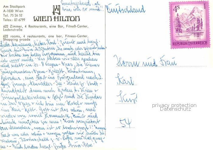 72773454 alte Postkarte Wien Hilton Wien Speisesaal Treppenaufgang Stefansdom postalisch gelaufen Erhaltung siehe scans [FriedD77] KatCode: 11390130090001